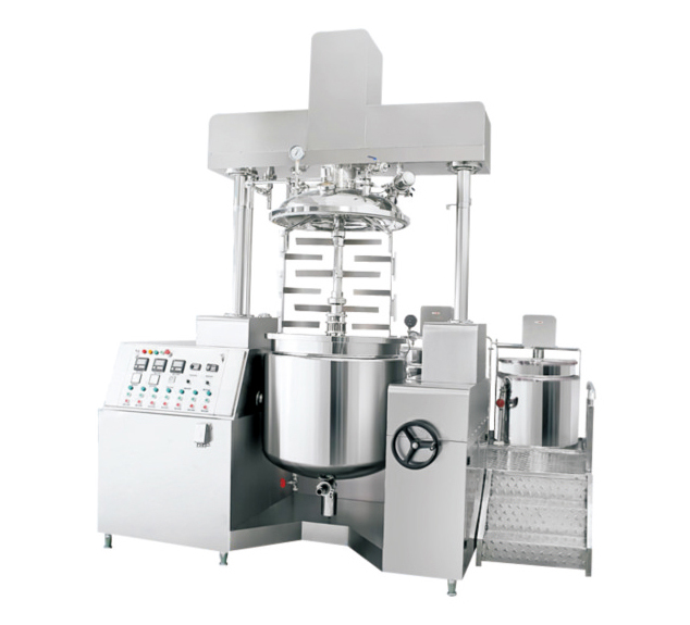 真空乳化機主要由水相鍋、油相鍋、乳化攪拌主鍋、真空系統(tǒng)、升降系統(tǒng)(可選)、電器控制系統(tǒng)(可選用PLC)、操作平臺等組成。